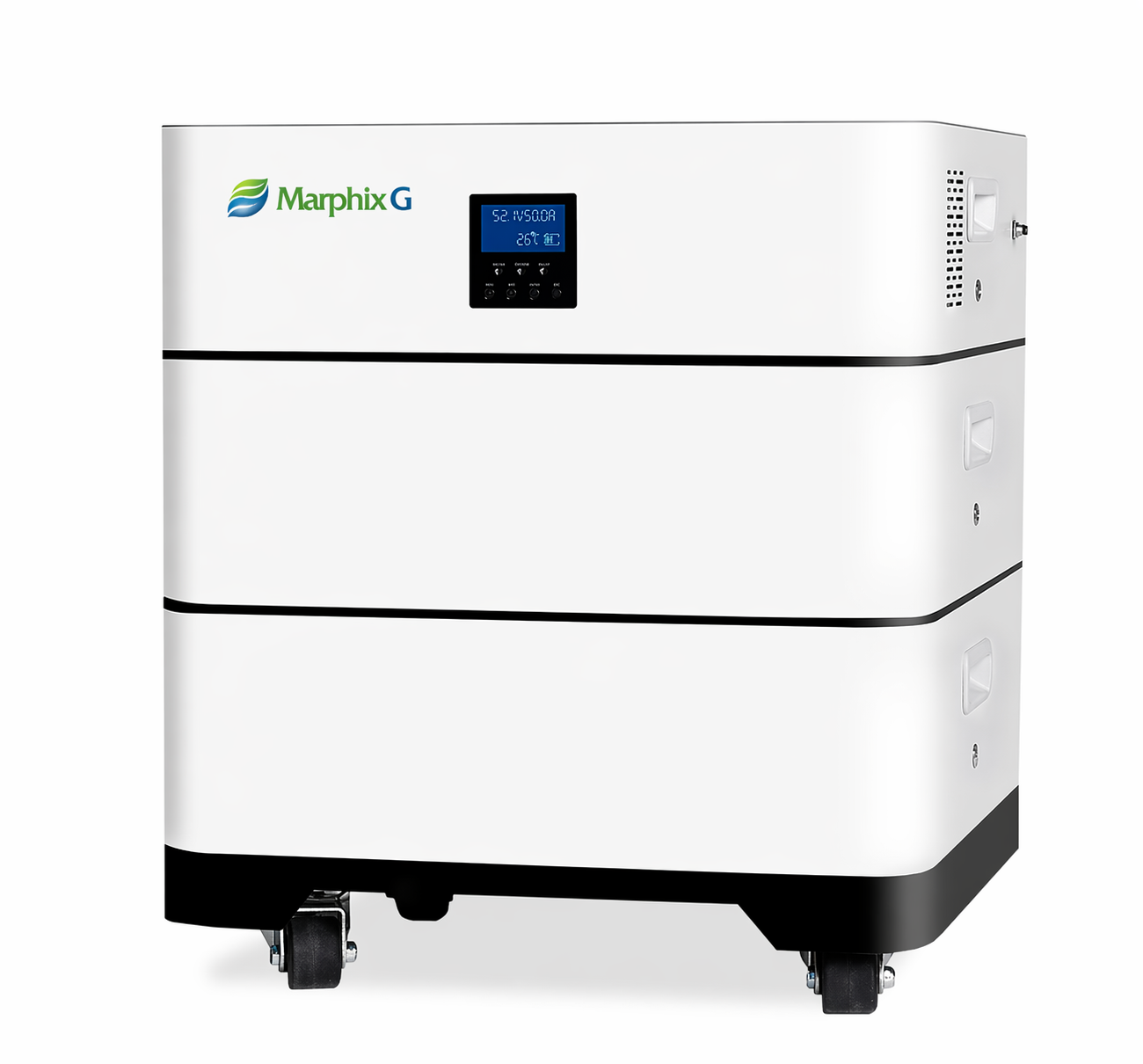 Wilt u nog meer flexibiliteit? Dan bieden wij ook geavanceerde rack-systemen waarmee u batterijen overzichtelijk kunt stapelen voor grotere installaties. Daarnaast introduceren we onze nieuwste oplossing: de moderne, stapelbare “living” batterij. Deze combineert kracht met een strak design en is perfect voor gebruik in huis.